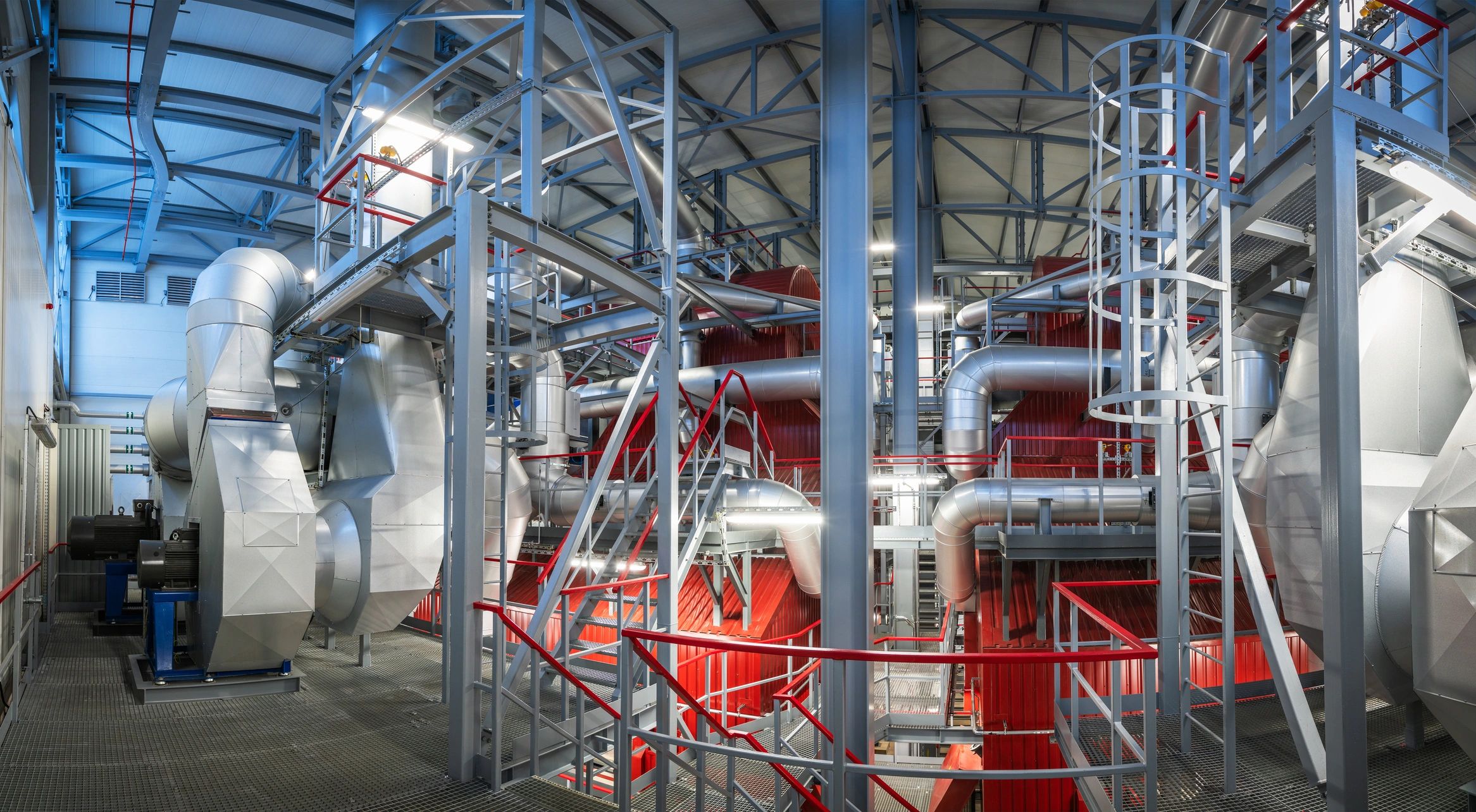 Manufacturing facility workshop with large fabricated metal object