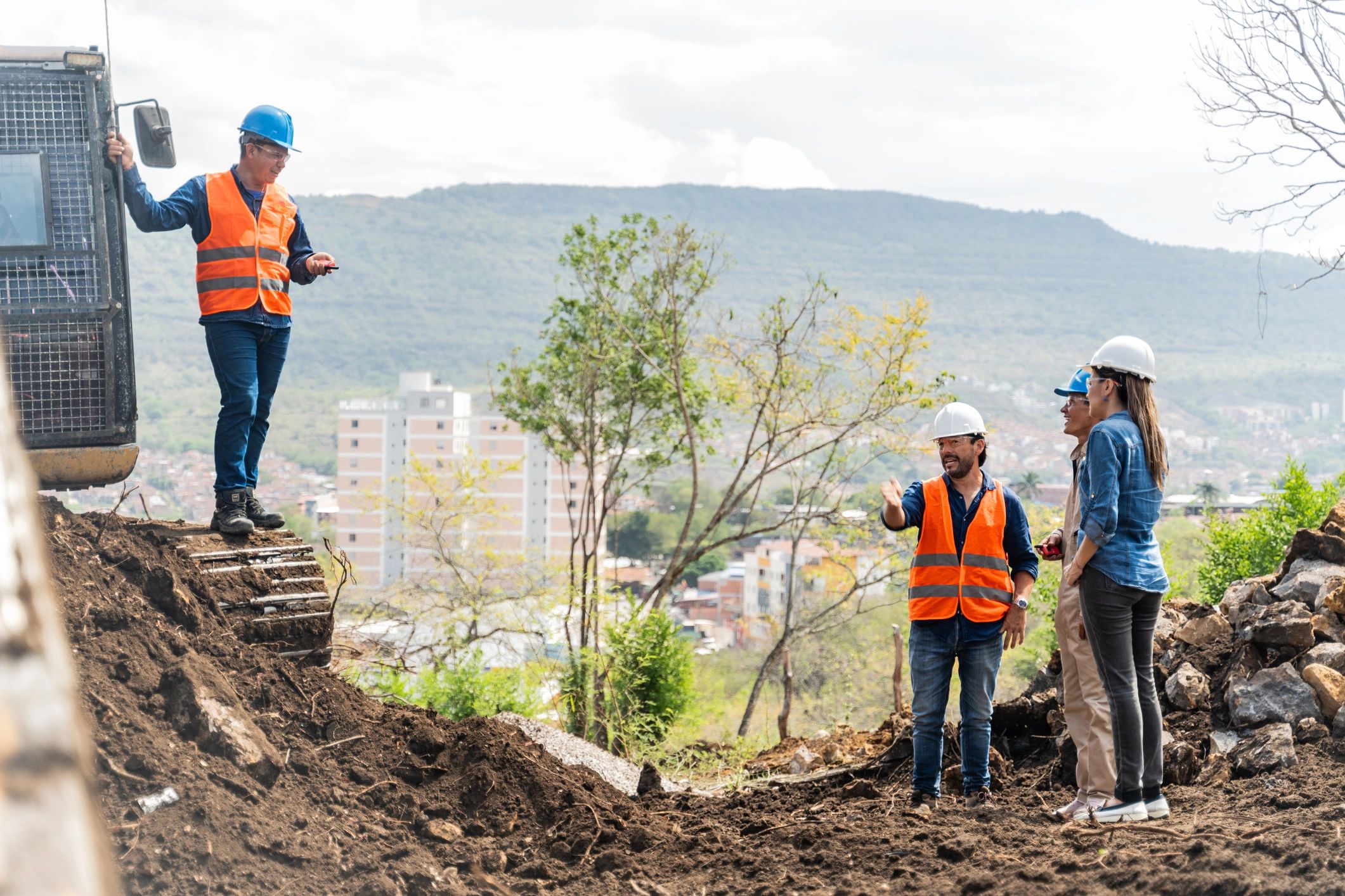 Project stakeholders meeting at a construction site