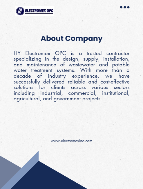 HY Electromex OPC designs, installs, and maintains water treatment solutions for industrial, commercial, and residential applications—helping you meet Philippine standards and protect your operations.